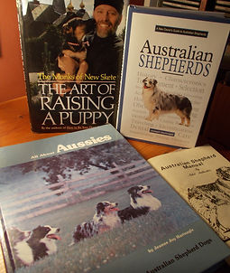 Australian Shepherd Manuel by Various noted Authors A great collection of tips and training methods. Explains one version of how puppies grow and react to environments. Wonderful insights and advice. Help with herding and frisbee.